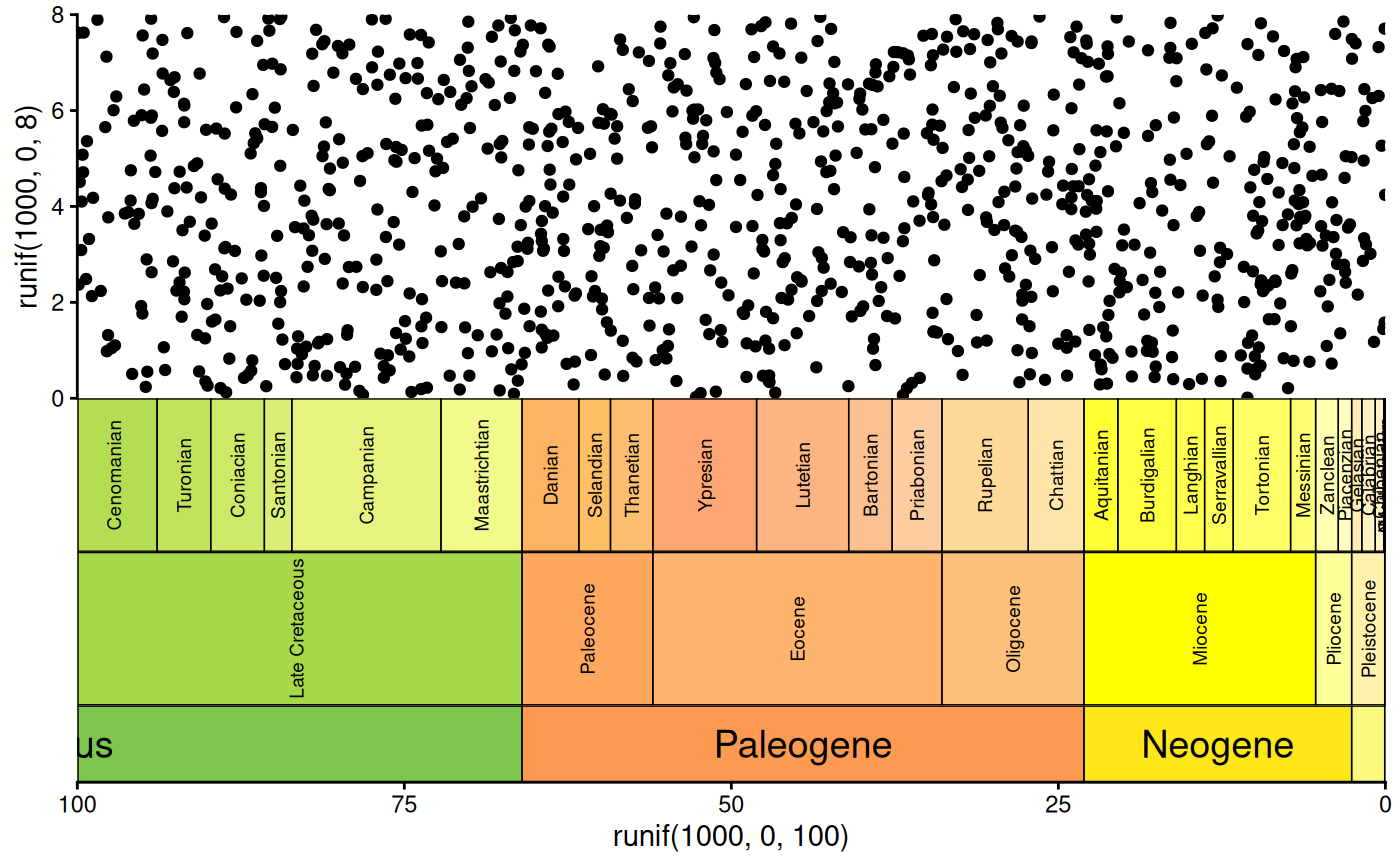 geom_point(aes(y = runif(1000, 0, 8), x = runif(1000, 0, 100))) +