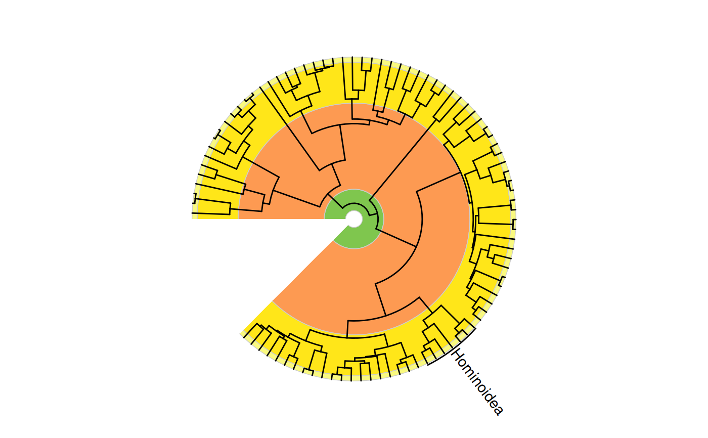 geom_text_clade(label = "Hominoidea", node = 114, extend = c(0.1, 0.1)) +